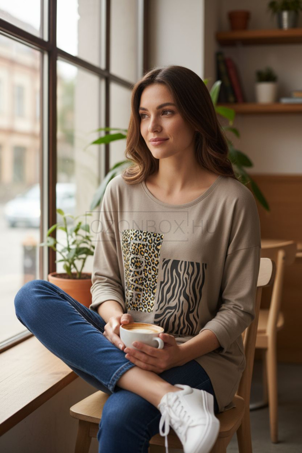A leopárd és zebra minta merész, mégis ízléses – egy egyszerű farmerrel is divatos megjelenést biztosít. Egy arany karperec vagy fülbevaló pedig még inkább kiemeli a bézs árnyalat meleg tónusait.