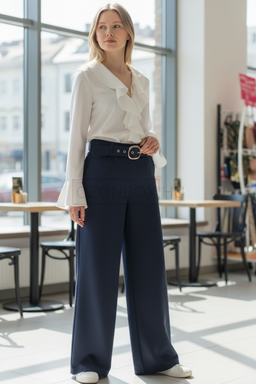 A Viviana nadrág modern letisztultságával és nőies eleganciájával könnyedén a gardróbod alapdarabjává válik. A sötétkék árnyalat különlegességet sugároz, miközben a magas derék és a széles övcsat optikailag karcsúsítja az alakot. Egyenes, kényelmes szabása tökéletes választás mindennapi viselethez, ugyanakkor elég elegáns ahhoz is, hogy munkahelyre vagy esti programokra viseld.