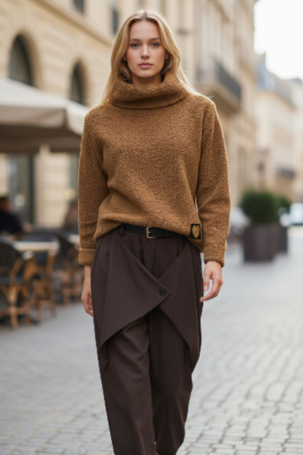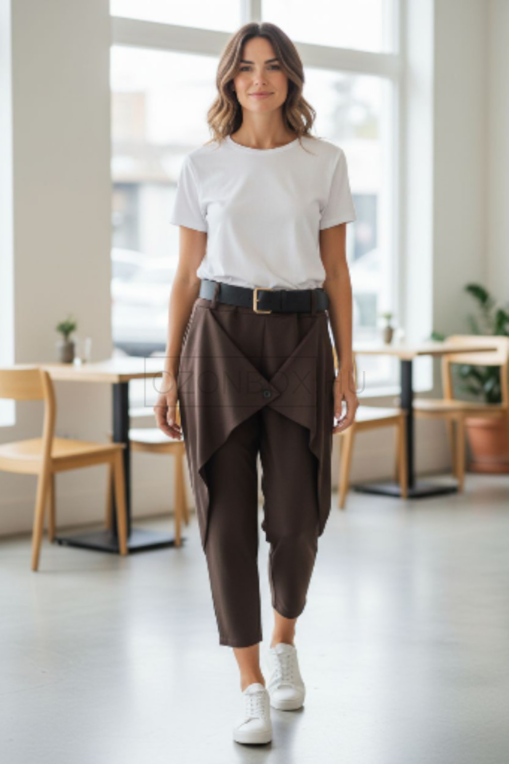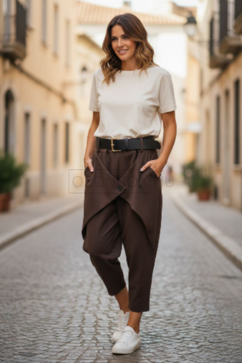 A barna árnyalat igazán nőies és feltűnő, mégis könnyen kombinálható. A prémium, lágyan eső anyag garantálja a komfortot egész nap – irodában, városi sétán vagy egy stílusos hétvégi programon.