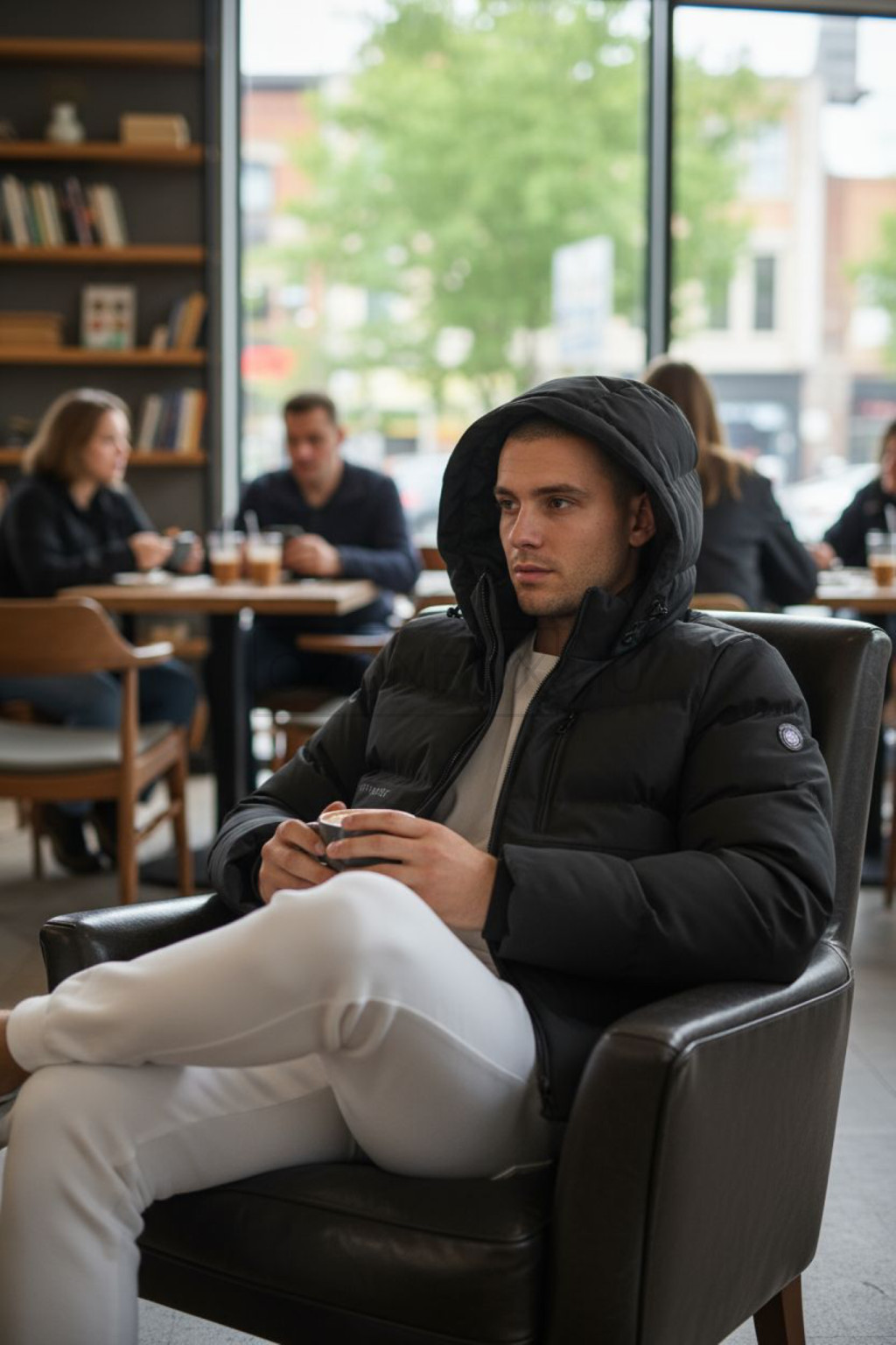 A Marco puffer kabát igazi városi kedvenc — tökéletes választás azoknak a férfiaknak, akik szeretik az egyszerű, de határozott megjelenést.
